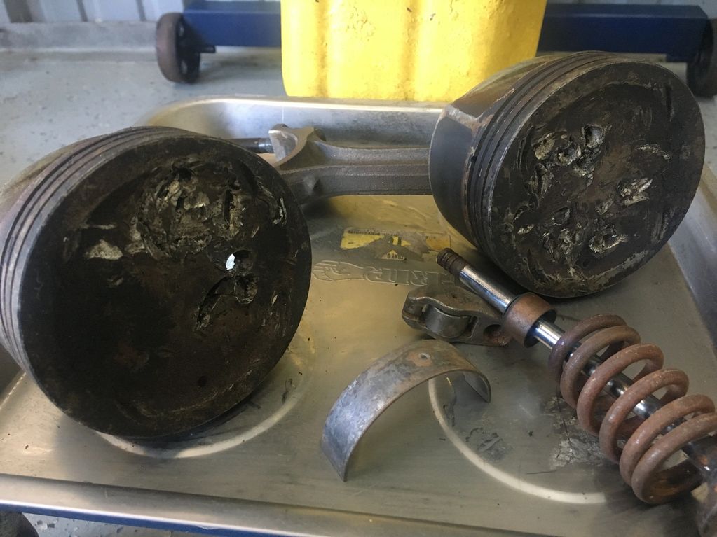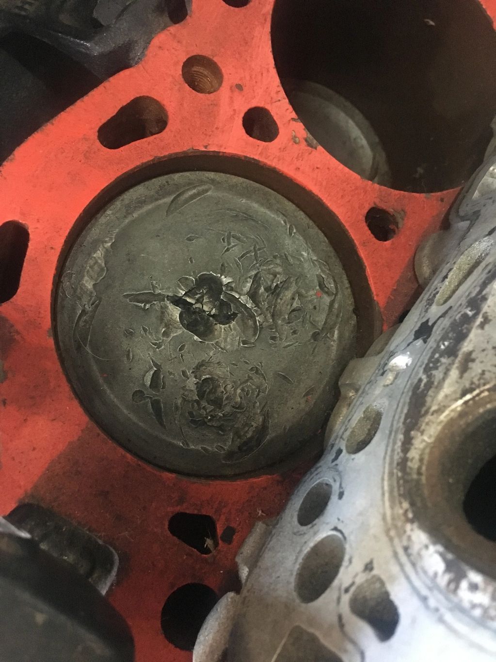 Here you see the valves literally crashed into the piston causing physical damaged which can be seen by the naked-eye.